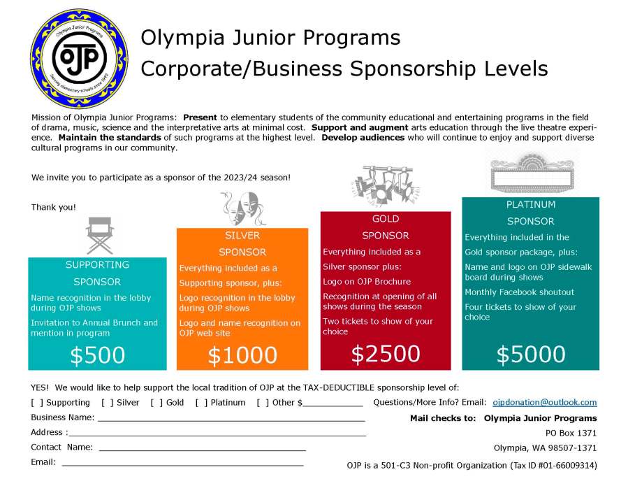 If you are interested in becoming an OJP Sponsor please download this form, fill it out, and mail it to the address indicated on the form. You may mail a check with the form or use the QR code/link to pay using your credit card.